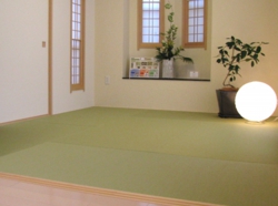 よく見るとこの畳、見慣れたものとちょっと違う・・・そう、“へり”がないんです。材料に「和紙」が使われている、新タイプの畳なのだそう。和室全体が引き締まって見え、スッキリした印象。変色しにくいので日焼けに強く、ダニやカビも発生しにくいのだとか。撥水性もいいので掃除がしやすいから、子どもやペットが遊んでも安心というわけです。